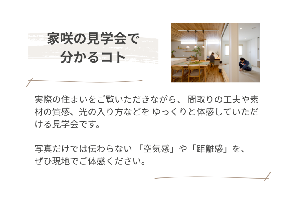 各部屋の広さや家の暖かさなど、家咲のお家を体感してみませんか?